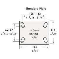 “X” Series Polyurethane on Cast Iron Wheeled Castor Specifications: