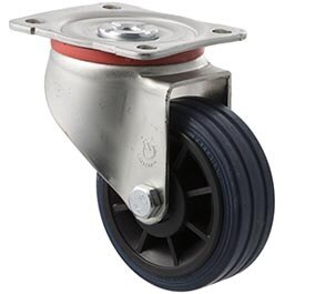 This castor is fitted with a High Resilience Rubber wheel. High Resilience Rubber wheels are non marking and offer the highest resilience of solid tyres, for easiest rolling over bumps.