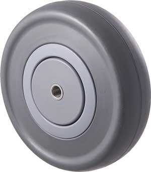 This castor is fitted with a Grey Rubber wheel. Grey Rubber Wheels are shock absorbing and minimise vibration thus prolonging equipment life and protecting the load. They can roll over small objects and roll easily on rough floors. As they are non-marking Grey Rubber Wheels help protect costly floor surfaces.