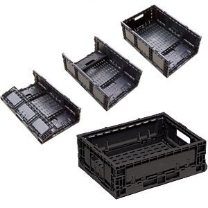 By folding to a fraction of their assembled height, these Plastic Foldable Crates achieve significant savings in transport fuel usage and carbon emissions by stacking more to the square metre than standard plastic and wooden crates.