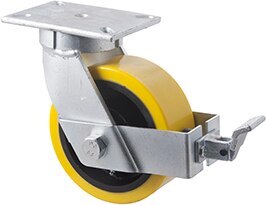 Polyurethane on Cast Iron wheels are the best choice for heavy industrial based applications, they can withstand higher load capacities than all other wheel types. Polyurethane offers long tread life and protects floors, is non-marking and delivers quieter operation than standard metal wheels.