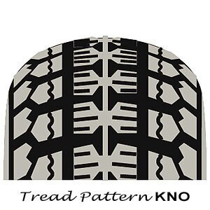4 ply tyres for longer, rougher life with a KNO pattern tread. The KNO pattern is a knobby pattern that is often preferred for outdoor use, good for gravel or uneven terrain.