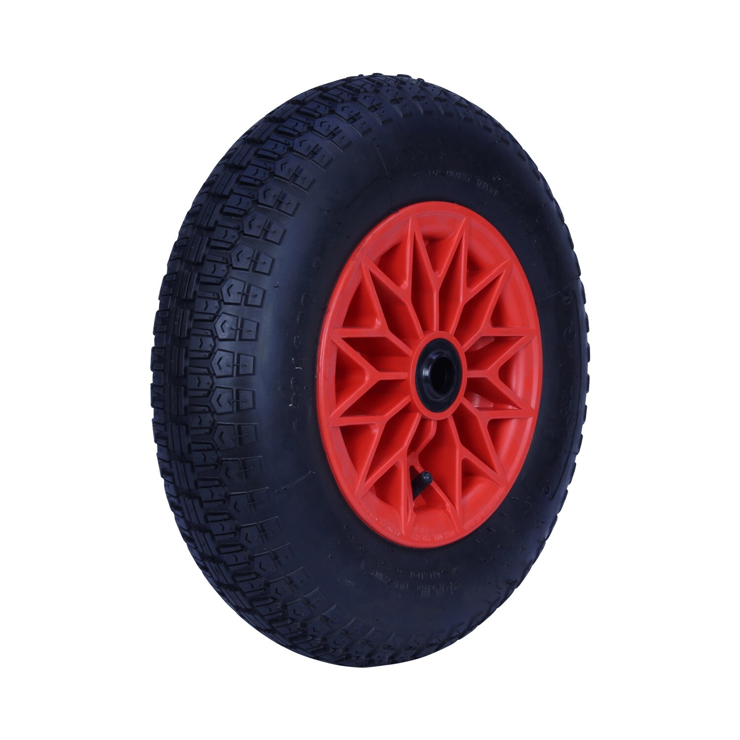 Plastic centred pneumatic wheels are the low cost alternative, with excellent performance in wet and corrosive environments. Available with 20mm - 3/4" - 5/8" or 1" plain bush polymer bearing.