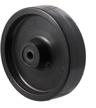 Nylon wheels provide high load capacities at a relatively low cost and are lightweight, non-marking and resistant to impact, abrasion, corrosion and the effect of many chemicals including oils, fats, most alkalis, soap and detergents. Nylon is unaffected by water. When moving quickly over rough surfaces Nylon can be noisy and, on surfaces such as vinyl, care should be taken when moving heavy loads as indentation may occur.