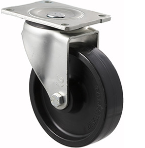 Nylon wheels provide high load capacities at a relatively low cost and are lightweight, non-marking and resistant to impact, abrasion, corrosion and the effect of many chemicals including oils, fats, most alkalis, soap and detergents. Nylon is unaffected by water. When moving quickly over rough surfaces Nylon can be noisy and, on surfaces such as vinyl, care should be taken when moving heavy loads as indentation may occur.
