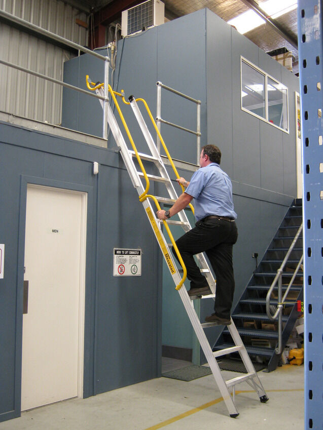 The Stockmaster Mezzalad Mezzanine Ladder is designed to comply with relative elements of Australian Standard AS 1892:1.1996 for portable metal ladders