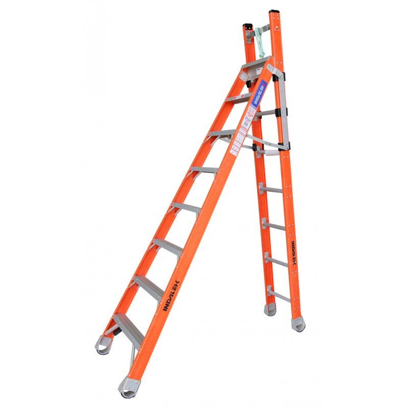 The Indalex PFSE8 Pro Series Fibreglass Step Extension ladder is a robust, heavy duty ladder constructed with the best joining methods, for a strong, durable ladder designed to last. With 4 configurations this versatile ladder can be used as a straight backed step ladder (allowing you to get closer to your work), an adjustable stairway step ladder, adjustable extension ladder and adjustable extension pole ladder. It's also perfect for accessing roof space through manholes.